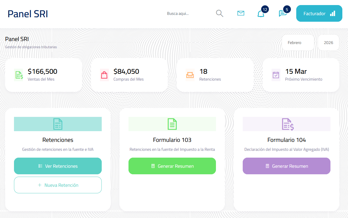 Facturación electrónica, retenciones y borradores de formularios tributarios.
